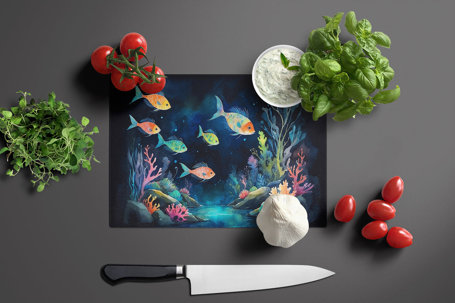Introduce your kitchen to the vibrant, large Decorative Glass Cutting Board from Caroline's Treasures. Crafted from resilient tempered glass, this board is not only a utilitarian necessity but also a colorful art piece. With its generous dimensions of 15 inches in height and 12 inches in length, it offers ample space for all your cutting needs. Every piece showcases captivating artwork from distinguished artists, bringing an aesthetic edge to your kitchen. Beyond its attractive design, this cutting board ensures your countertop stays pristine and unscathed, owing to its heat-resistant properties. Engineered with user convenience in mind, it features non-skid feet for stability, and rounded corners for additional safety. Its robust construction renders it virtually unbreakable, guaranteeing longevity. The board comes with protective feet bumpers, maintaining its position during use. This product is recommended to be hand washed only. Proudly printed and assembled in the United States, this cutting board exemplifies superior craftsmanship. With Caroline's Treasures' Decorative Glass Cutting Board, you're investing in a blend of functionality and artistic flair.