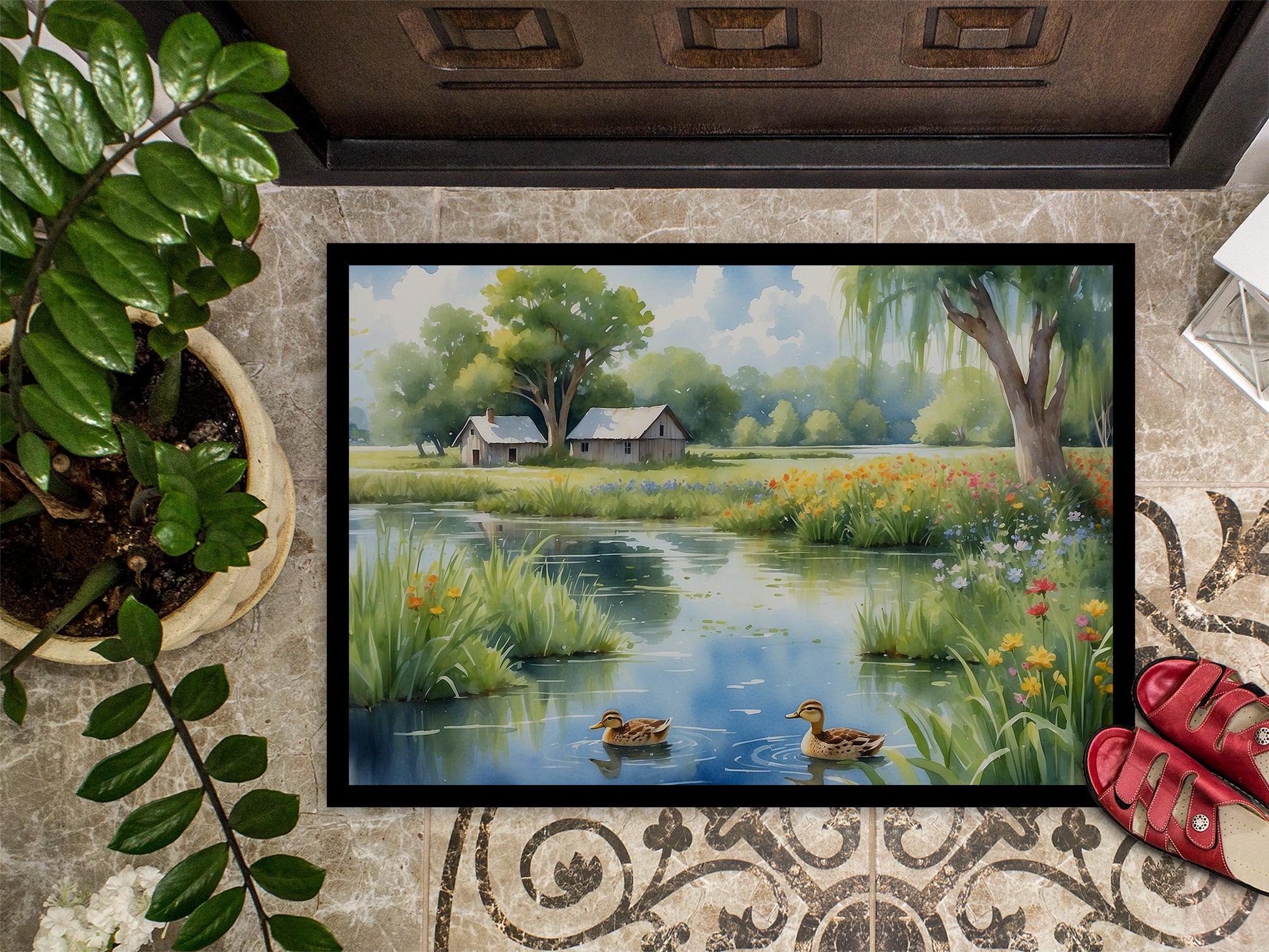 Doormat featuring breed specific Duck artwork. Welcome your guests in style with our Artwork Door Mat, designed to withstand almost any weather condition. This mat, measuring approximately 18 by 27 inches, is held together by durable black binding tape. Its top layer, composed of polyester felt, is dyed with the eye-catching image you see on the mat. A few layers below provide the mat with stability, while its rubber bottom is stamped to help prevent slipping and ensures safety. Our mat works wonderfully as both an indoor or outdoor door mat. For cleaning, simply hose it off with water or use a power washer - no need for any cleaner that produces suds. Avoid scrubbing with a brush, instead, opt for the vacuum on floor setting. Designed manufactured and printed in the USA, this mat is a perfect addition to your porch, outdoor kitchen, entryway, or any indoor space. Its unique design makes it a charming decorative rug that greets your guests and adds a stylish touch to your home decor.